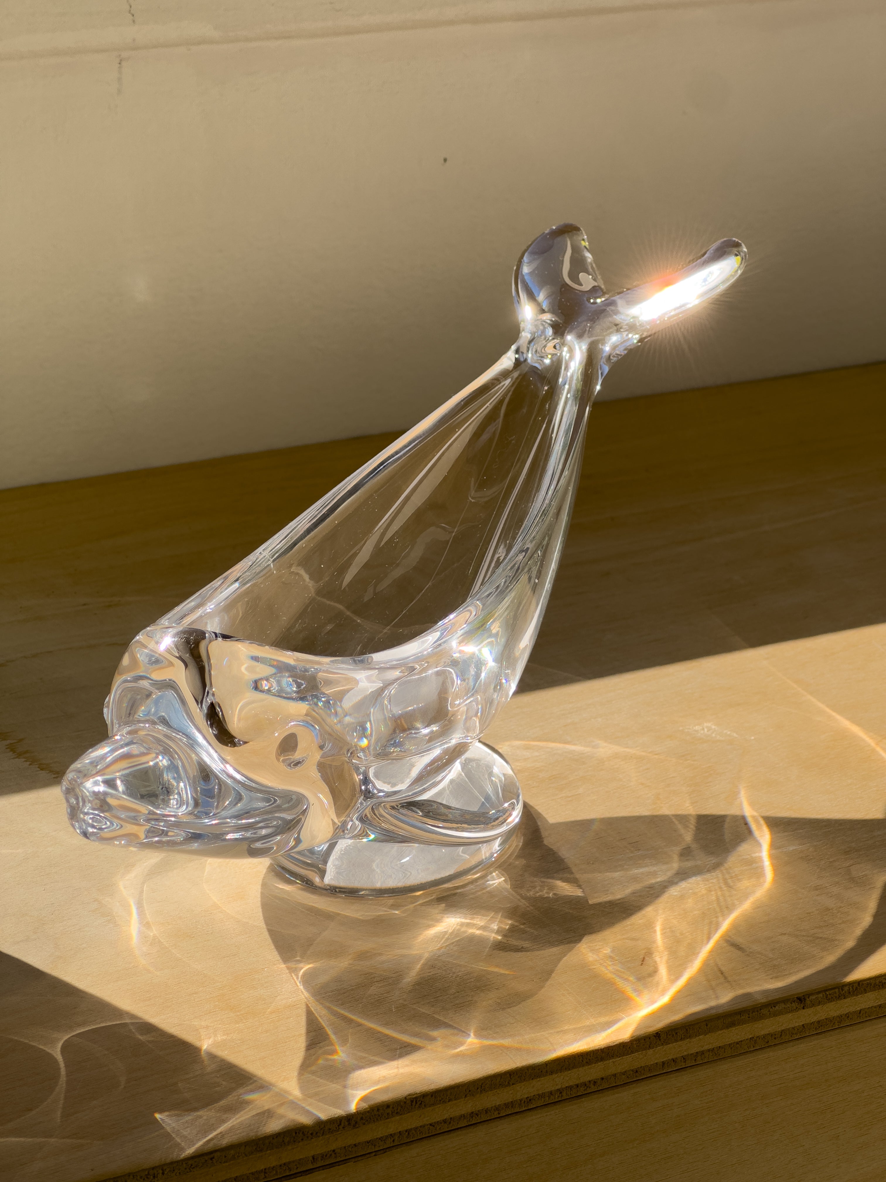 Crystal dolphin dish perfect as a catch-all or for housing your matchbooks. Place this near your window facing sunrise or sunset light to enjoy the reflections it casts — almost like moving water.